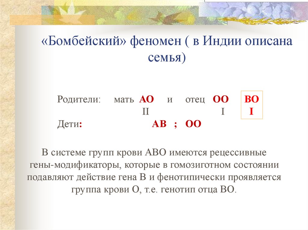 В системе групп крови АВО имеются рецессивные