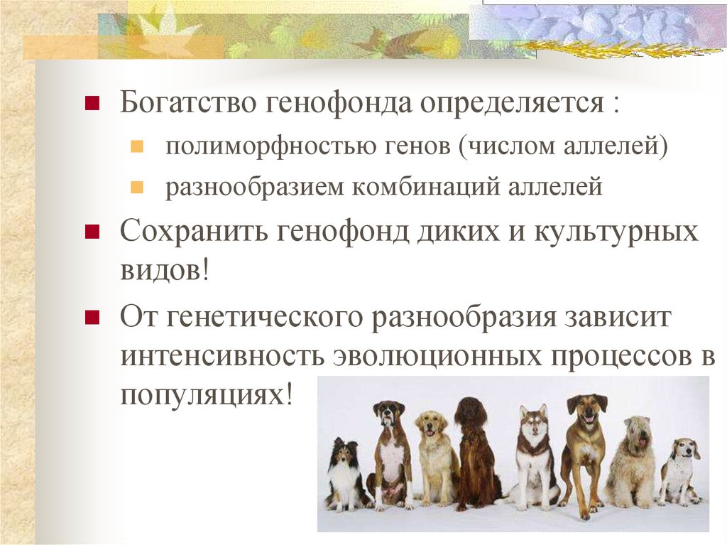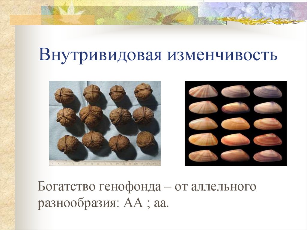 Внутривидовая изменчивостьБогатство генофонда – от аллельного