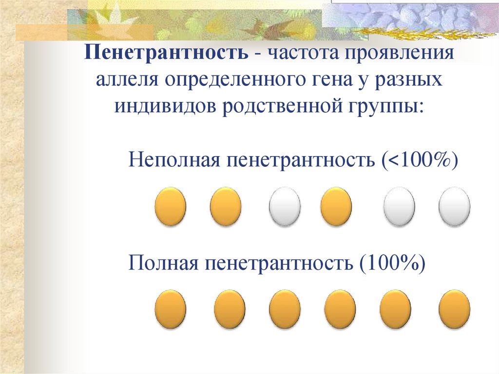 Пенетрантность - частота проявленияаллеля определенного гена у разных