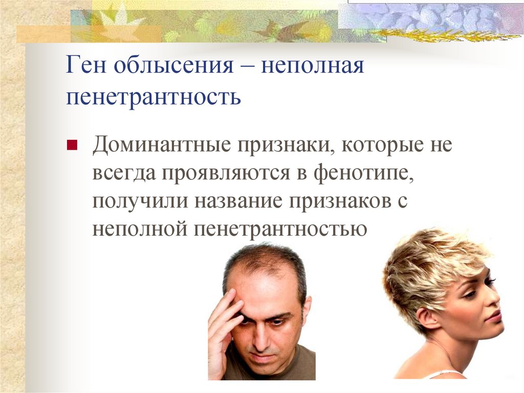 Ген облысения – неполнаяпенетрантность