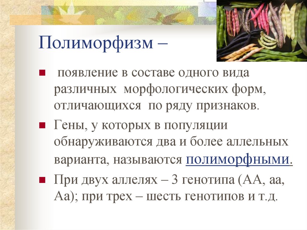 Полиморфизм –появление в составе одного вида