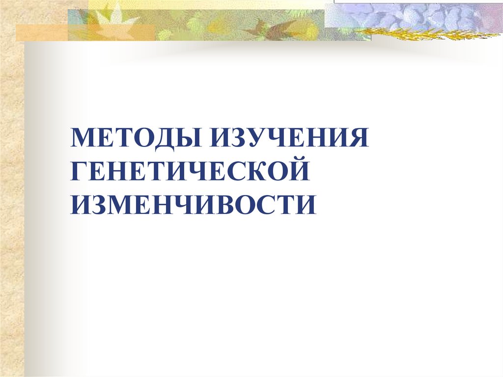 МЕТОДЫ ИЗУЧЕНИЯГЕНЕТИЧЕСКОЙ