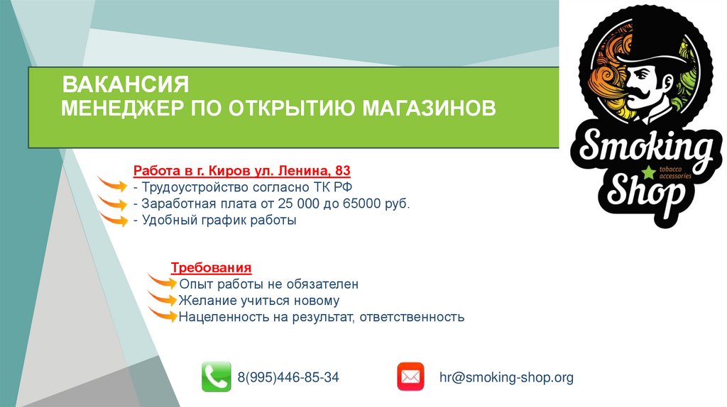 Вакансия менеджер по открытию магазинов