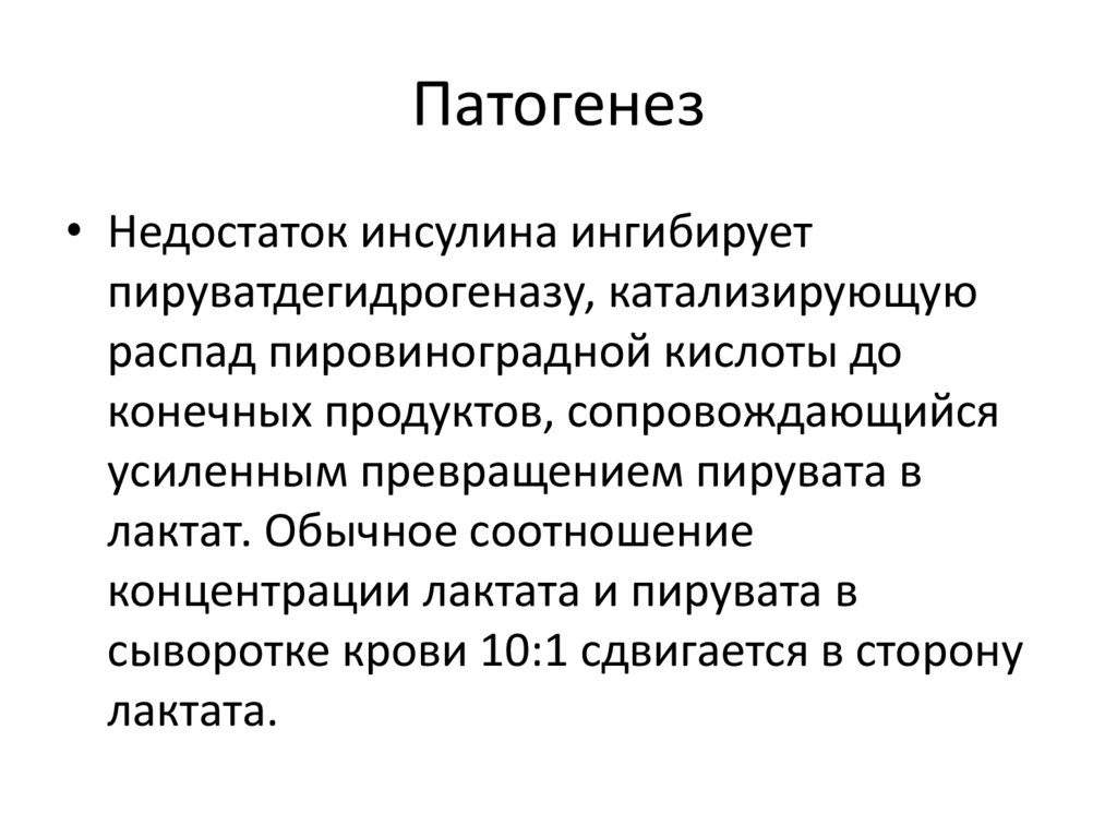 Патогенез• Недостаток инсулина ингибирует