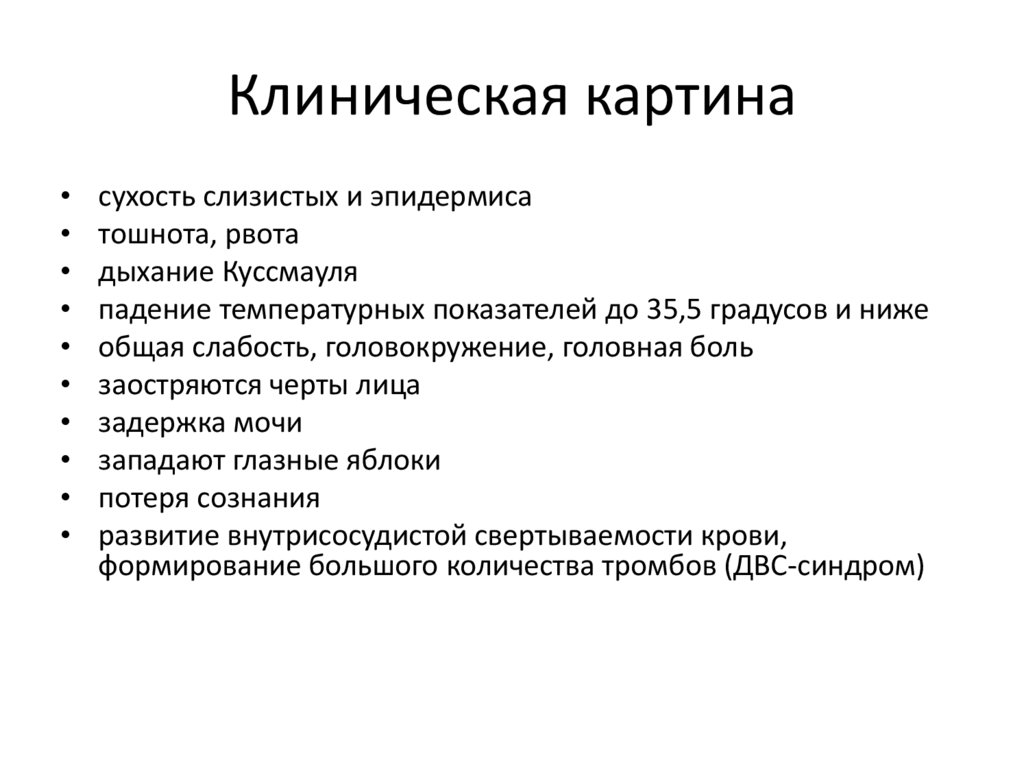 Клиническая картинасухость слизистых и эпидермиса