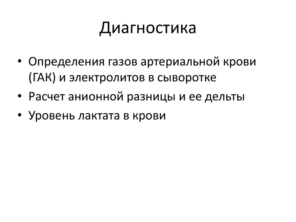 • Лактат-ацидоз - метаболический ацидозс большой анионной разницей (≥10) и