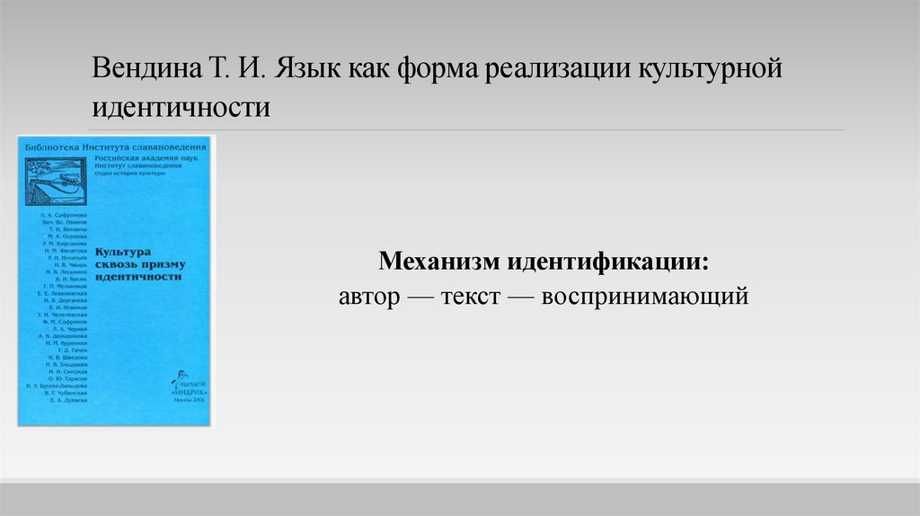 Вендина Т. И. Язык как форма реализации культурнойидентичности