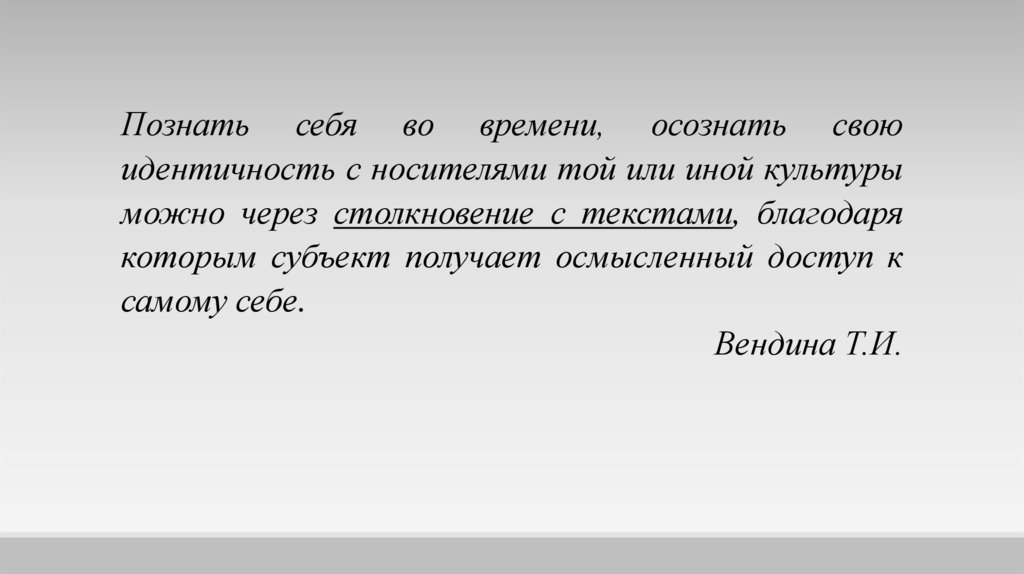 Познать себя во времени, осознать своюидентичность с носителями той или иной культуры