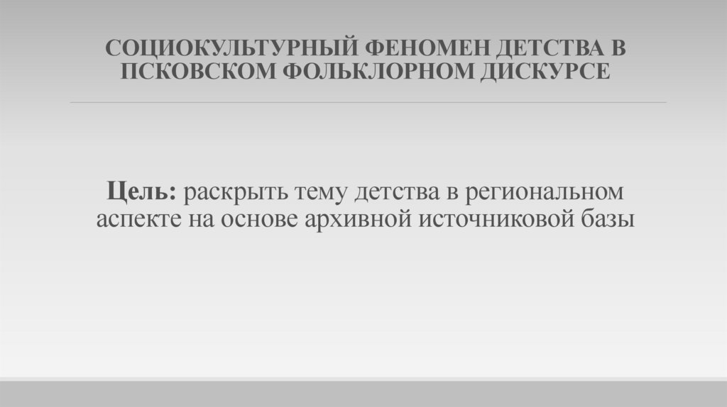 СОЦИОКУЛЬТУРНЫЙ ФЕНОМЕН ДЕТСТВА ВПСКОВСКОМ ФОЛЬКЛОРНОМ ДИСКУРСЕ