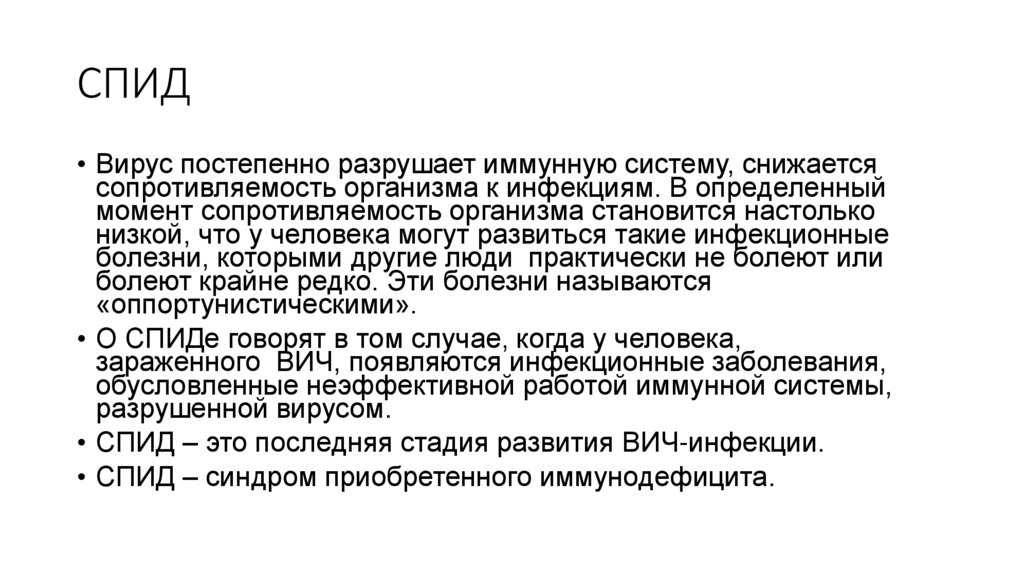 • СПИД – это последняя стадия развития ВИЧ-инфекции.