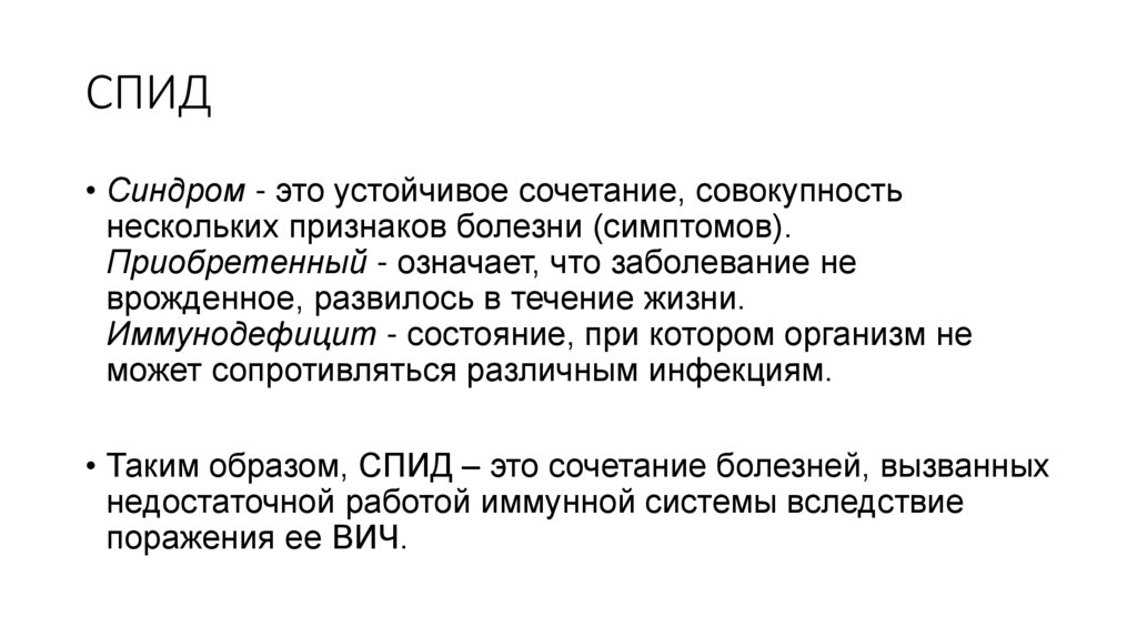 СПИД• Синдром - это устойчивое сочетание, совокупность