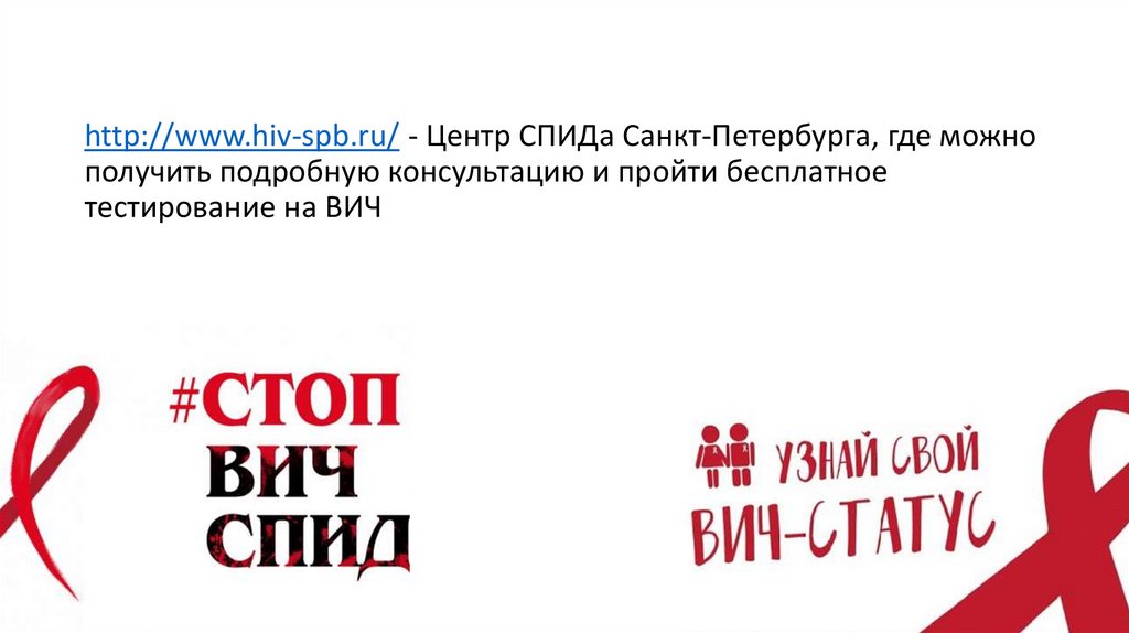 http://www.hiv-spb.ru/ - Центр СПИДа Санкт-Петербурга, где можнополучить подробную консультацию и пройти бесплатное