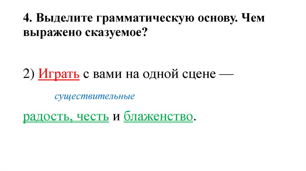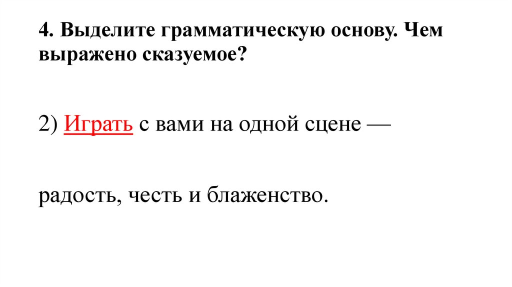 4. Выделите грамматическую основу. Чемвыражено сказуемое?