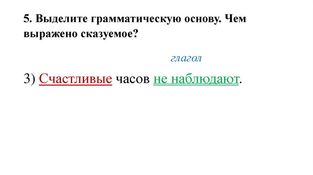 5. Выделите грамматическую основу. Чемвыражено сказуемое?
