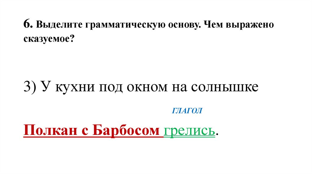 6. Выделите грамматическую основу. Чем выраженосказуемое?