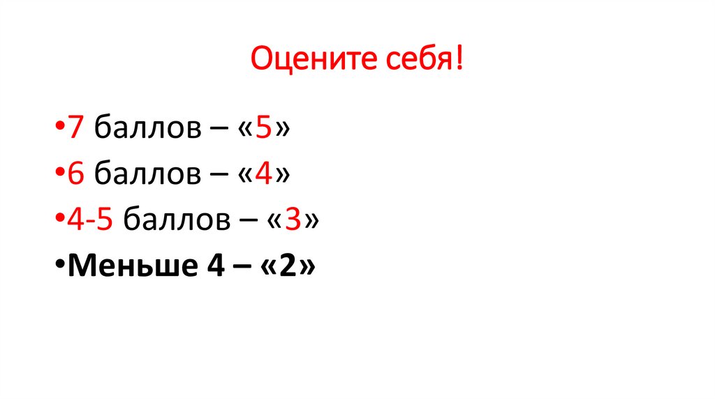 Оцените себя!•7 баллов – «5»