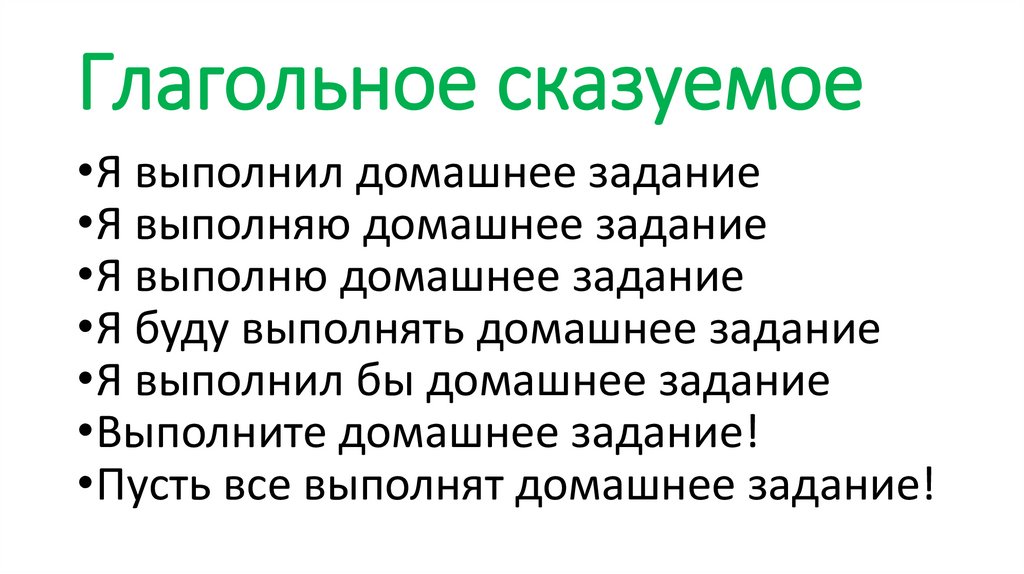 Глагольное сказуемое•Я выполнил домашнее задание