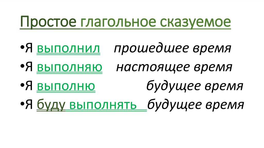 Простое глагольное сказуемое•Я выполнил прошедшее время