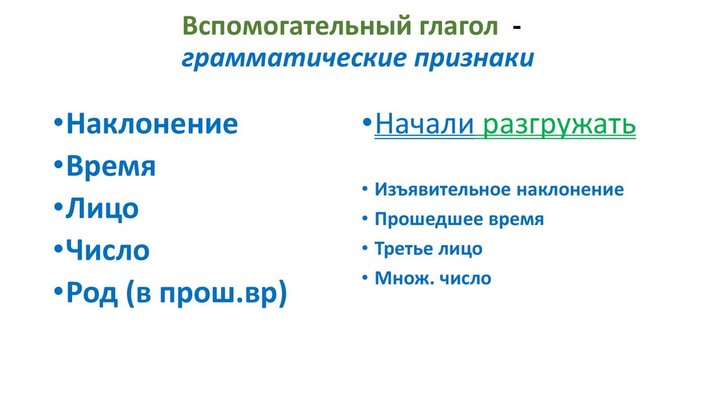 Вспомогательный глагол грамматические признаки•Наклонение