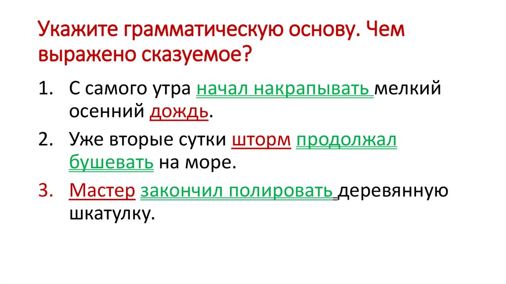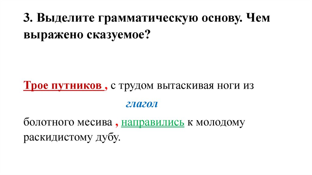 3. Выделите грамматическую основу. Чемвыражено сказуемое?