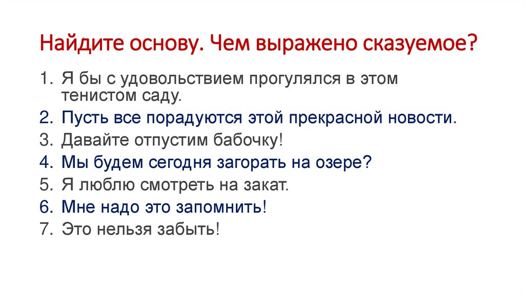 7. Выделите грамматическую основу. Чем выраженосказуемое?