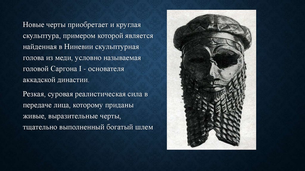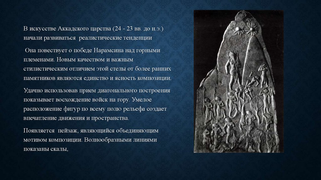 В искусстве Аккадского царства (24 - 23 вв. до н.э.)начали развиваться реалистические тенденции