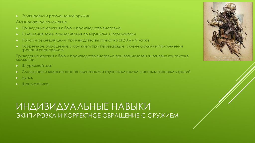 ЭКИПИРОВКА И КОРРЕКТНОЕ ОБРАЩЕНИЕ С ОРУЖИЕМ