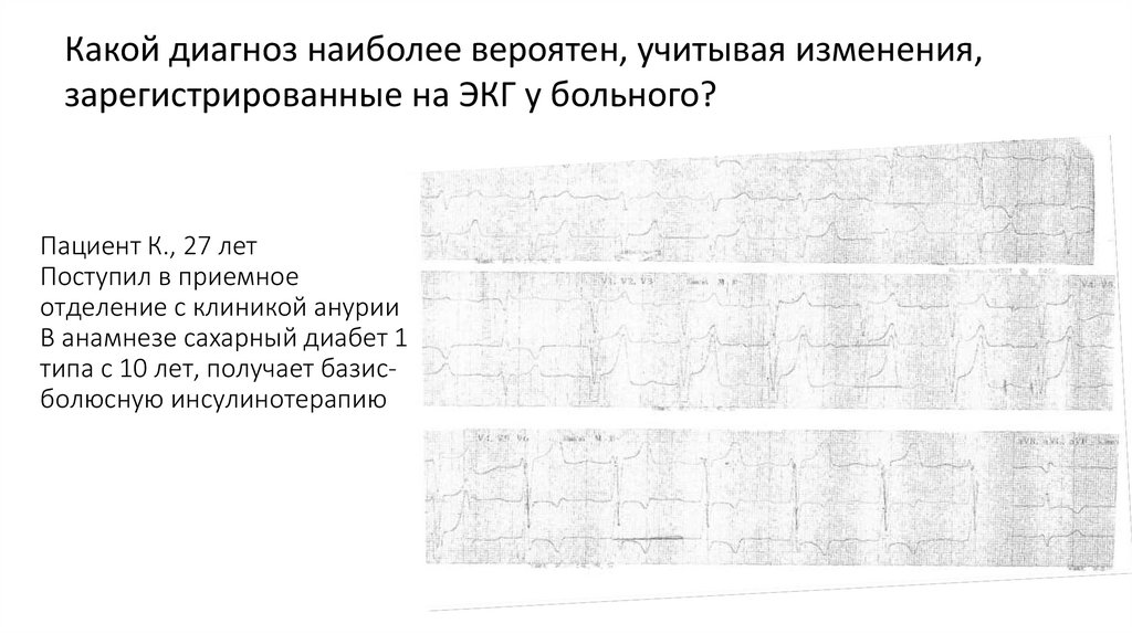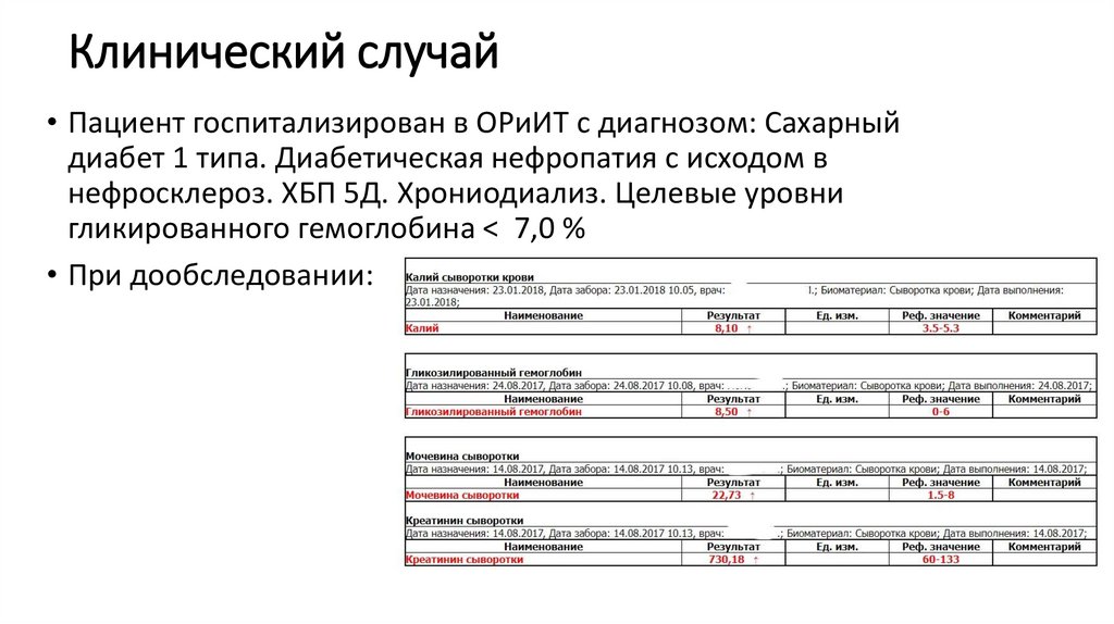 Клинический случай• Пациент госпитализирован в ОРиИТ с диагнозом: Сахарный