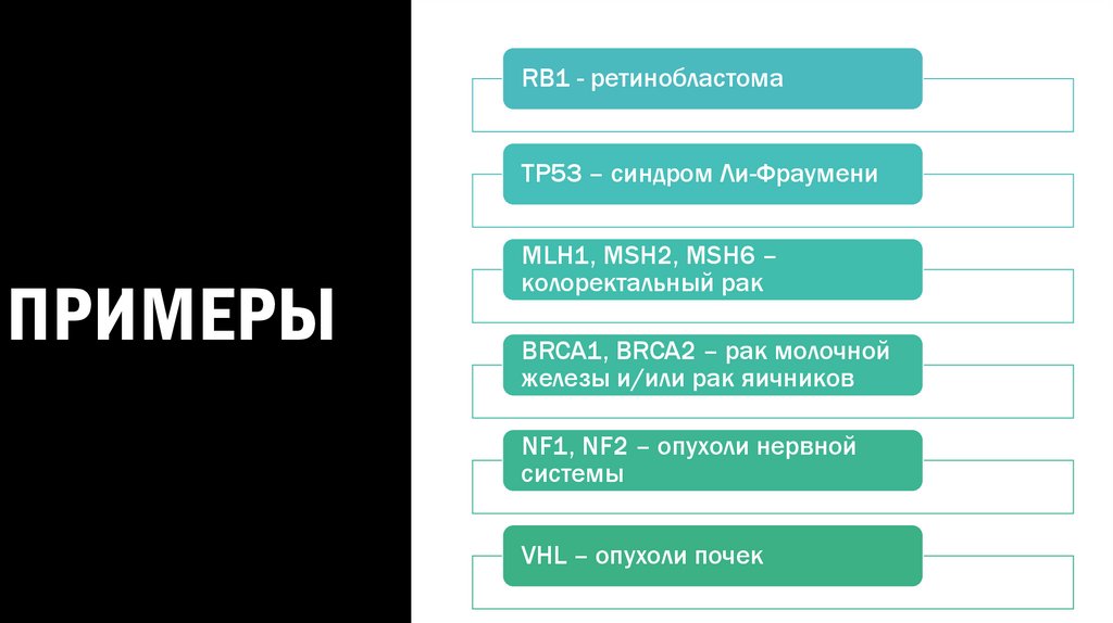 RB1 - ретинобластомаTP53 – синдром Ли-Фраумени