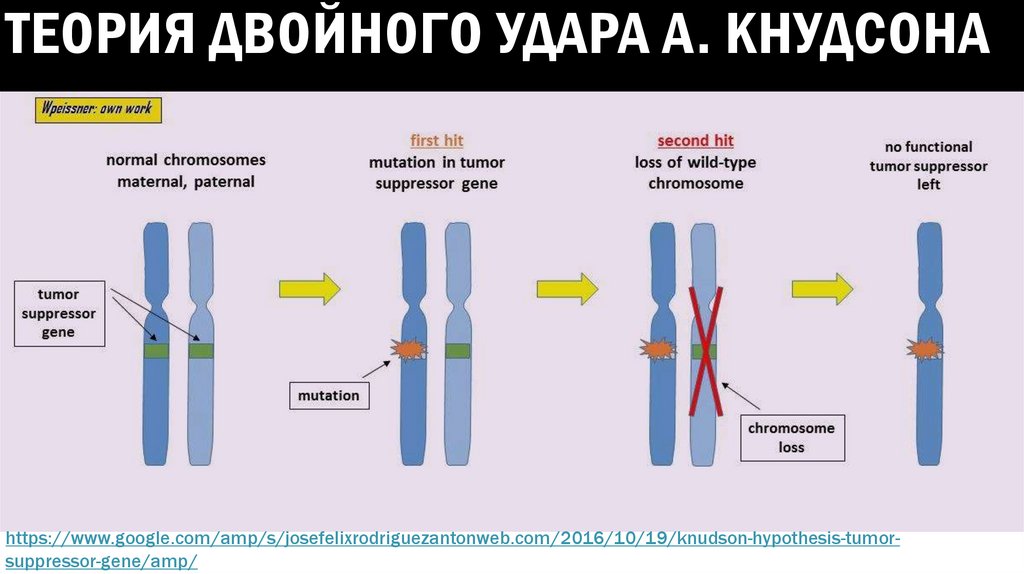 ТЕОРИЯ ДВОЙНОГО УДАРА А. КНУДСОНАhttps://www.google.com/amp/s/josefelixrodriguezantonweb.com/2016/10/19/knudson-hypothesis-tumorsuppressor-gene/amp/