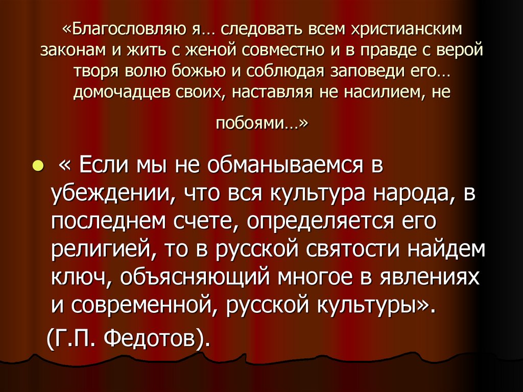 «Благословляю я… следовать всем христианскимзаконам и жить с женой совместно и в правде с верой