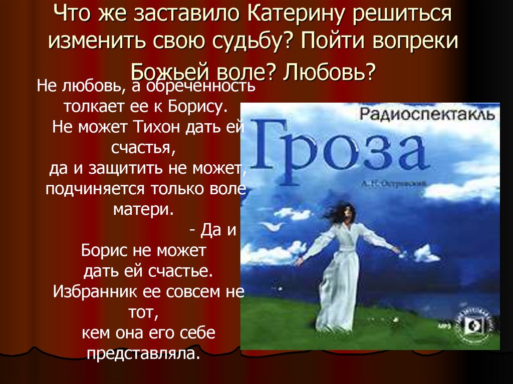 Что же заставило Катерину решитьсяизменить свою судьбу? Пойти вопреки
