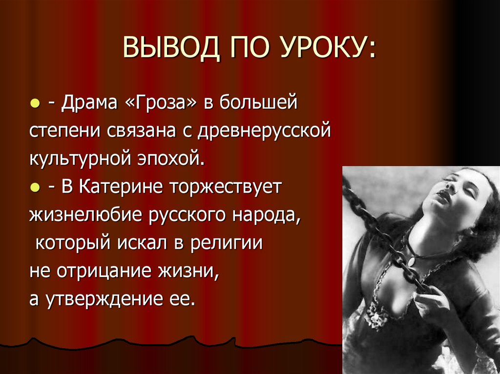 ВЫВОД ПО УРОКУ:- Драма «Гроза» в большей