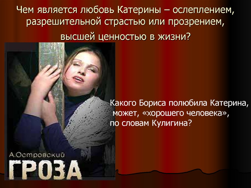Чем является любовь Катерины – ослеплением,разрешительной страстью или прозрением,