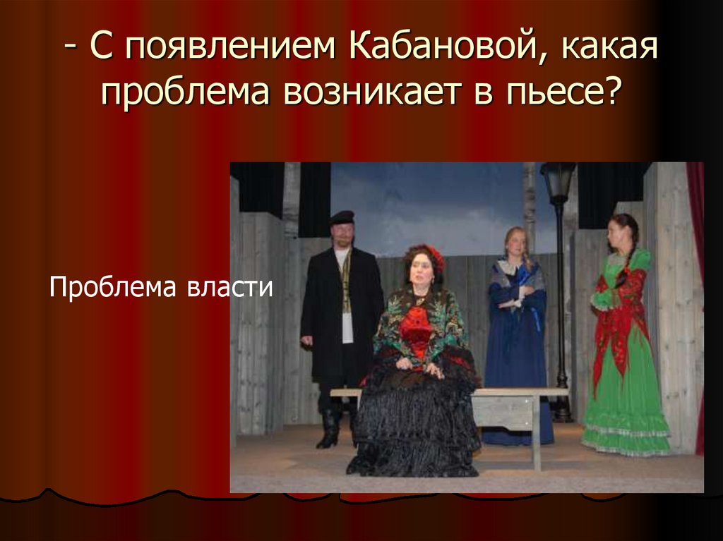 - С появлением Кабановой, какаяпроблема возникает в пьесе?