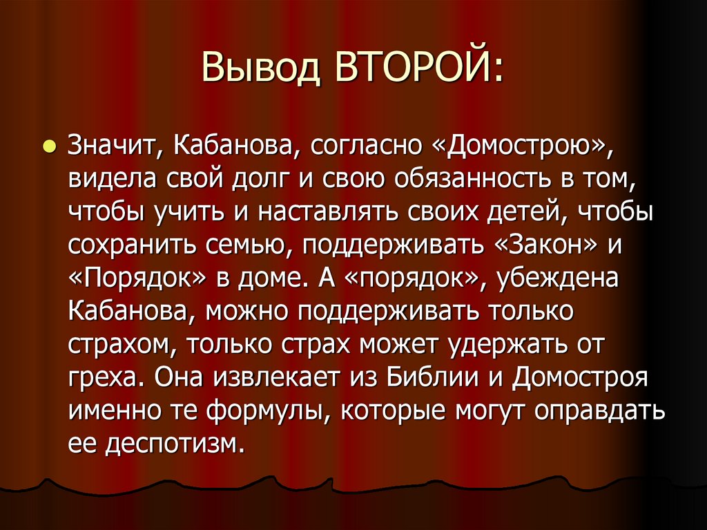 Вывод ВТОРОЙ:Значит, Кабанова, согласно «Домострою»,