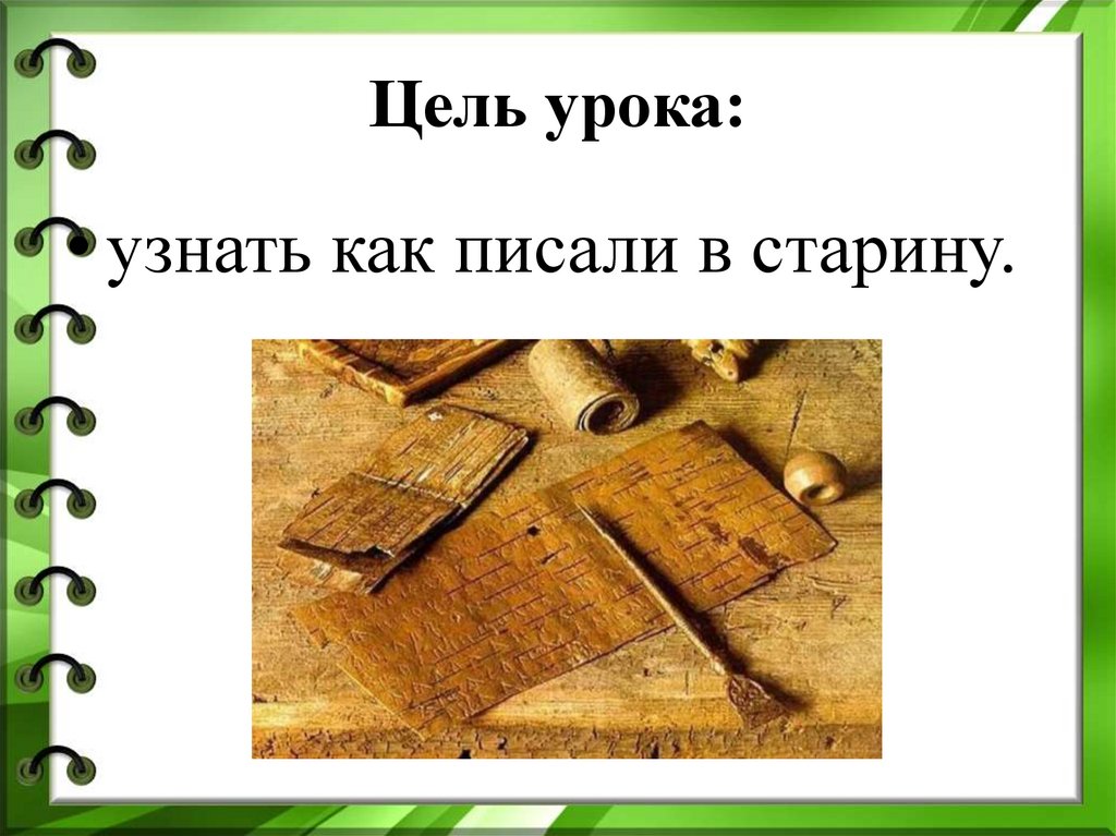 Цель урока:• узнать как писали в старину.