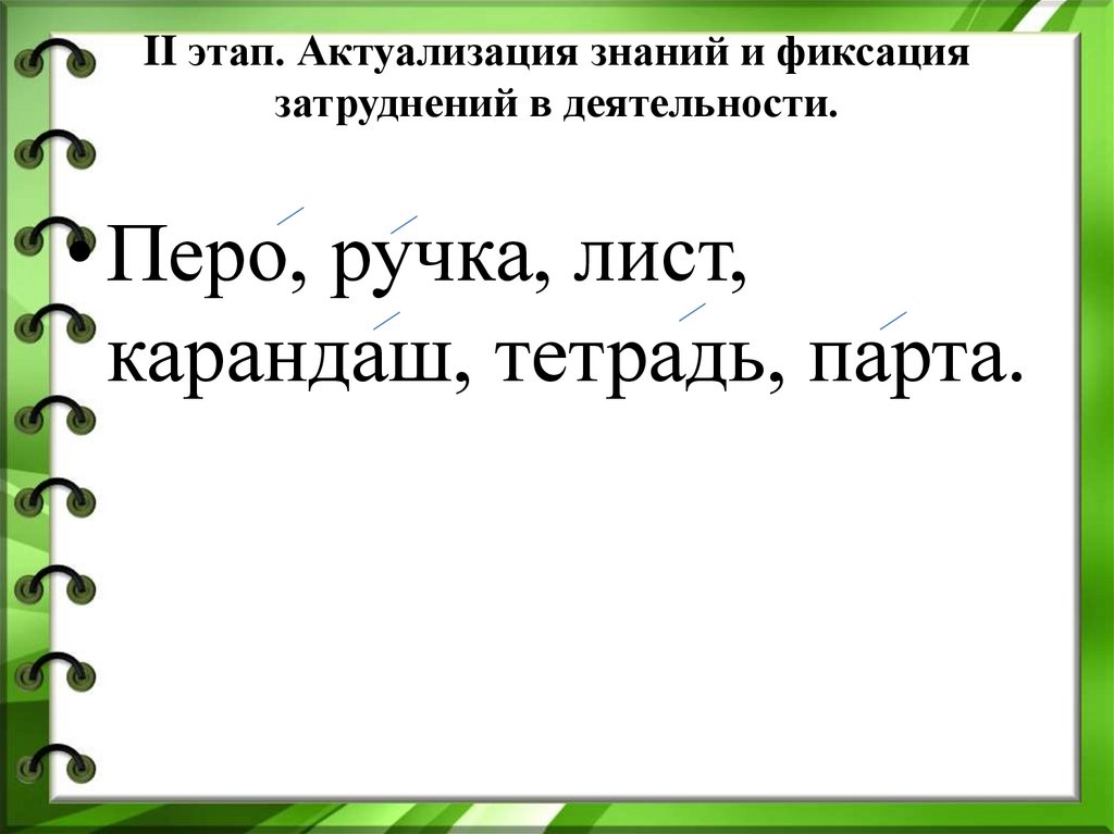 II этап. Актуализация знаний и фиксациязатруднений в деятельности.