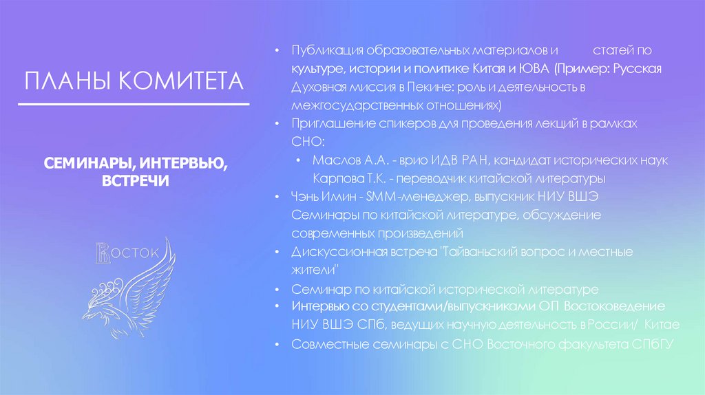• Совместные семинары с СНО Восточного факультета СПбГУ