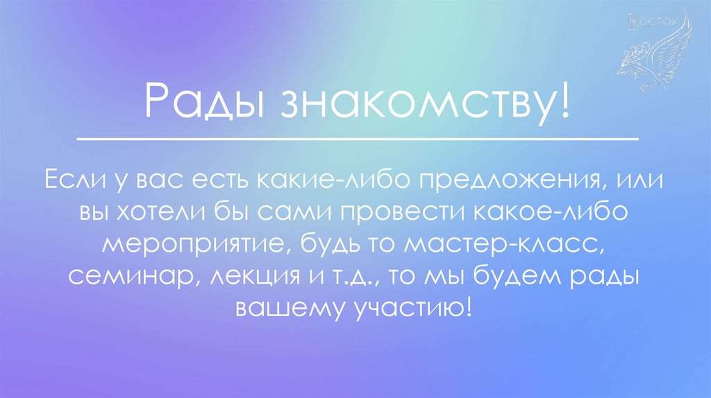 Рады знакомству!Если у вас есть какие-либо предложения, или
