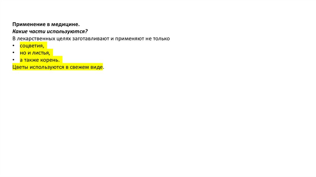 Применение в медицине.Какие части используются?
