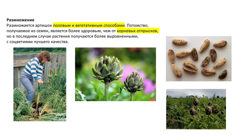 РазмножениеРазмножается артишок половым и вегетативным способами. Потомство,