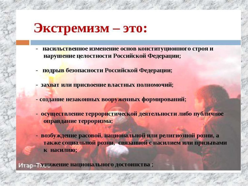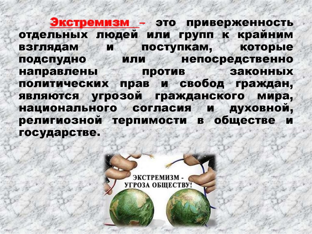 Экстремизм – это приверженностьотдельных людей или групп к крайним
