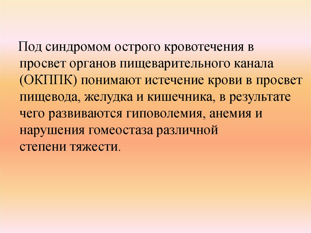 Под синдромом острого кровотечения впросвет органов пищеварительного канала