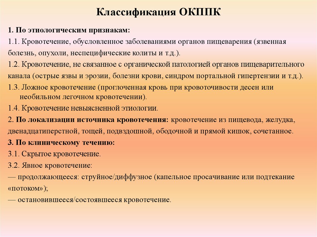 (ОКППК) понимают истечение крови в просвет