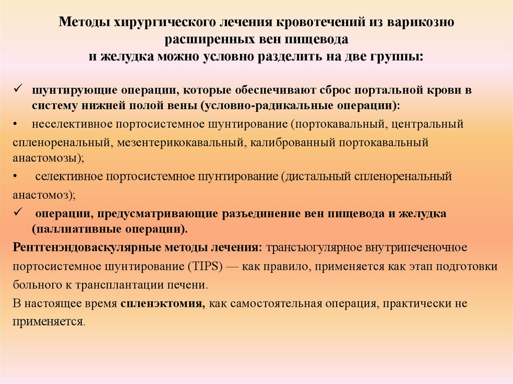 Методы хирургического лечения кровотечений из варикознорасширенных вен пищевода