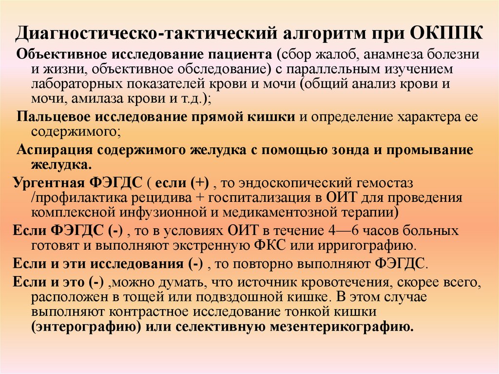 Диагностическо-тактический алгоритм при ОКППКОбъективное исследование пациента (сбор жалоб, анамнеза болезни