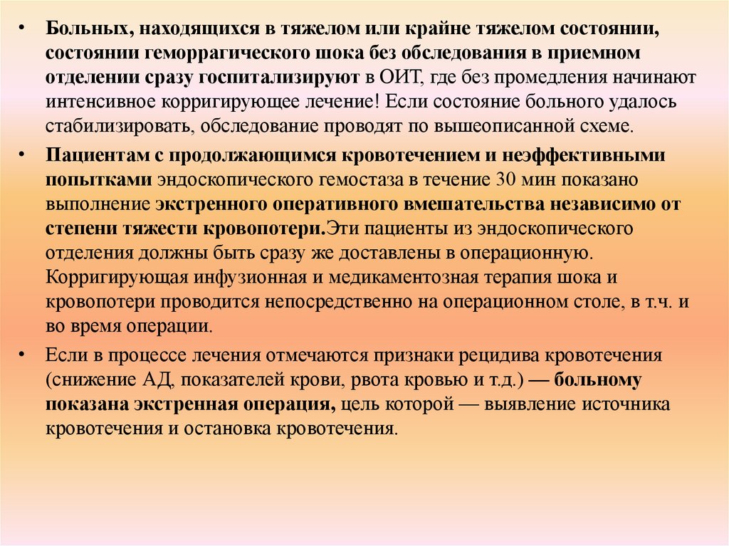 степени тяжести кровопотери.Эти пациенты из эндоскопического