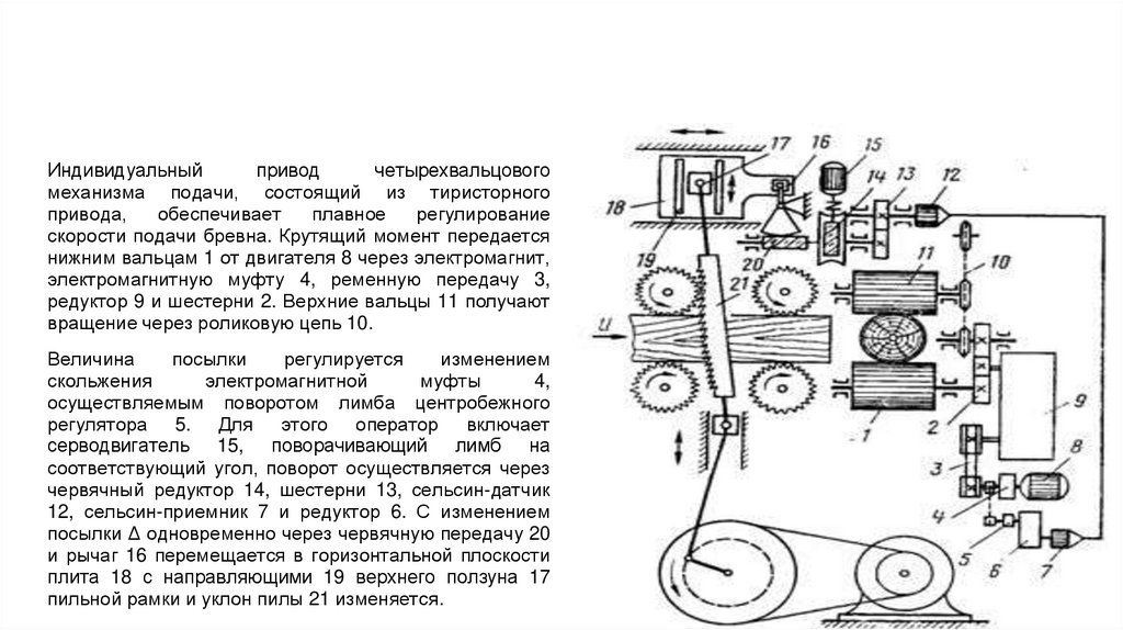 скорости подачи бревна. Крутящий момент передается