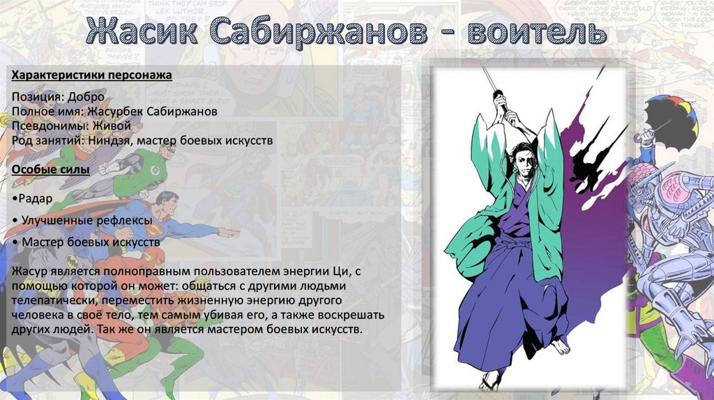 других людей. Так же он является мастером боевых искусств.